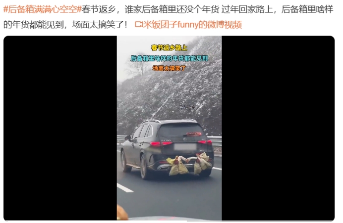 春节假期结束,高速公路上又出现了拖着行囊返程的身影,这几天各大社交媒体都被后备厢跑丢的鸡鸭鹅霸榜了。中国人过年回一趟家,出门的时候一定是被塞得满满的,养了一年的鸡鸭鹅都被收拾上车,于是高速公路上全是各有笑料的后备厢。