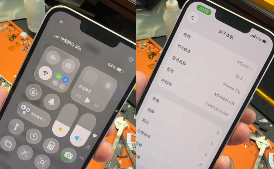 昨天晚上,在爱锋贝院长+华强北坚哥(郑炼坚)的努力下,全球首台的iPhone17e卡贴机成功破解,C1X基带可实现完美5GA高清通话+上网!