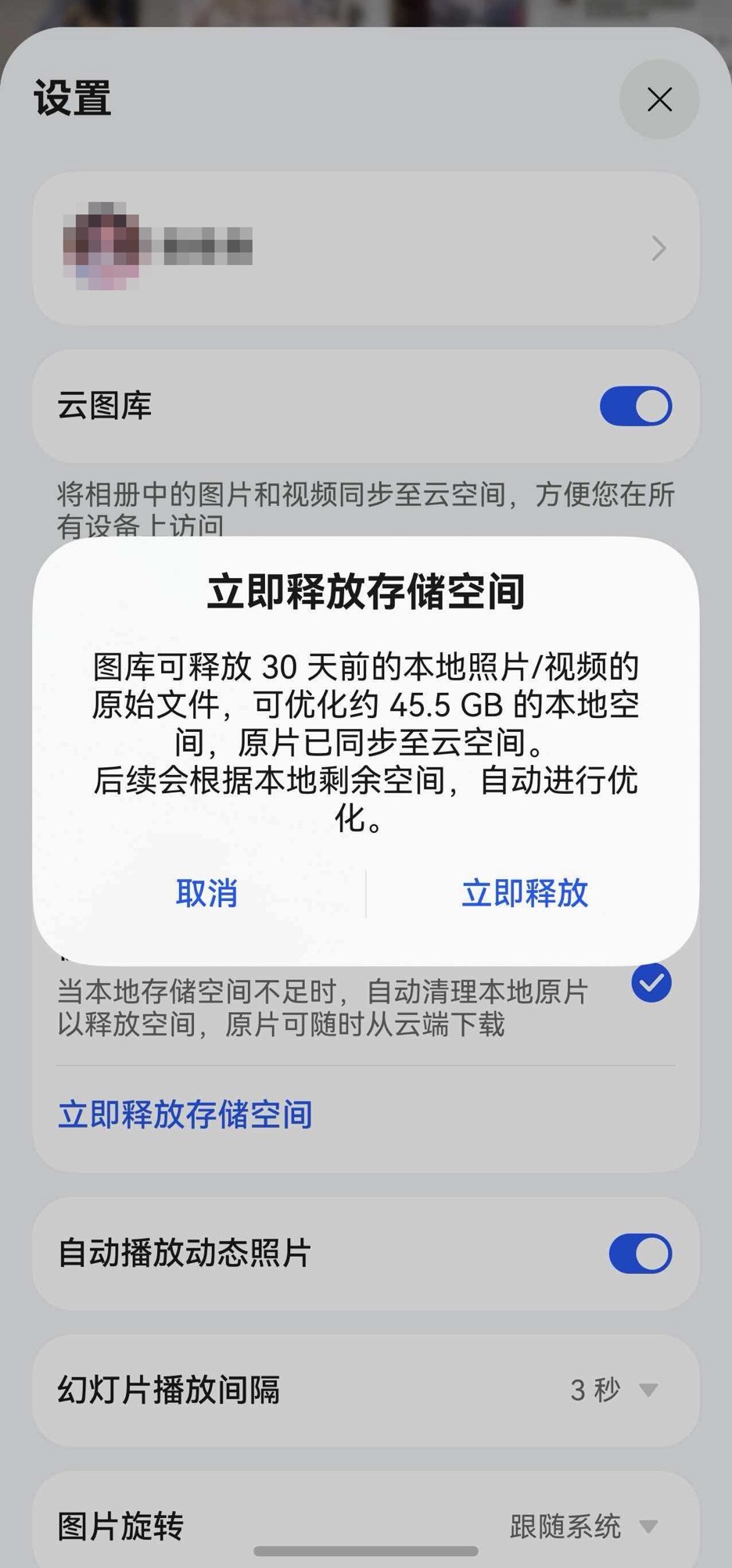 这位管家的核心“技能”,就是云图库。开启后,手机里的所有照片、视频原图就会自动同步到云端。这时候就会有人问了:这不跟网盘是一样的吗?答案当然是“NO”!作为系统自带的服务,云空间不仅不用安装App,还有个杀手锏——“优化设备存储空间”功能。