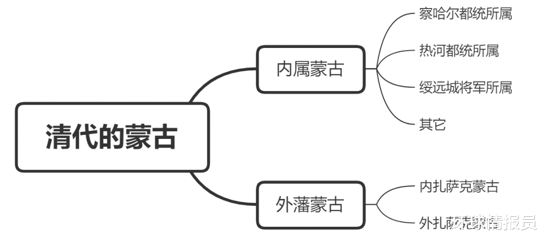 二者统称外藩蒙古,再加上直属清廷的内属蒙古,就构成了清廷对蒙古地区统治架构的全貌。