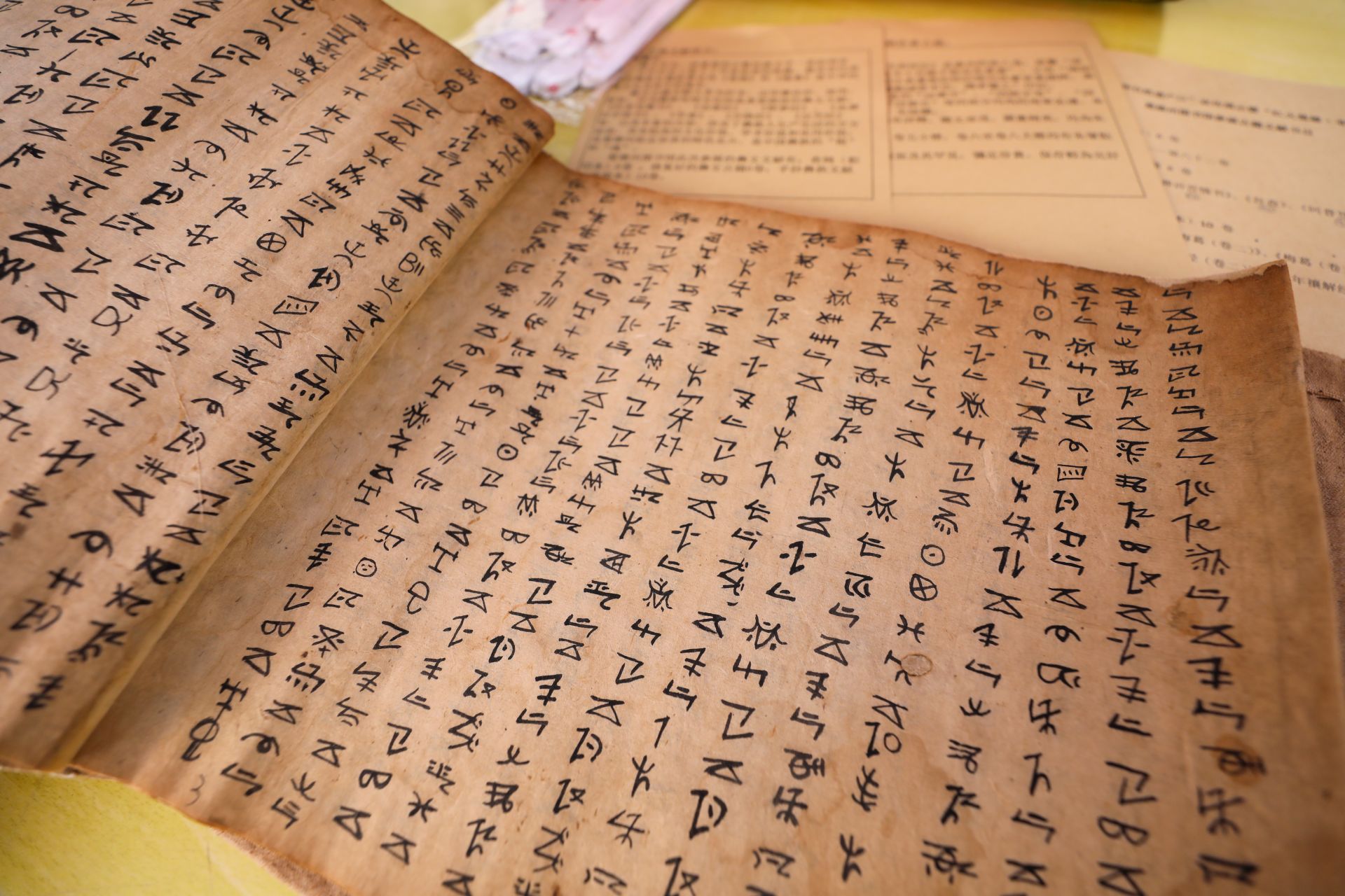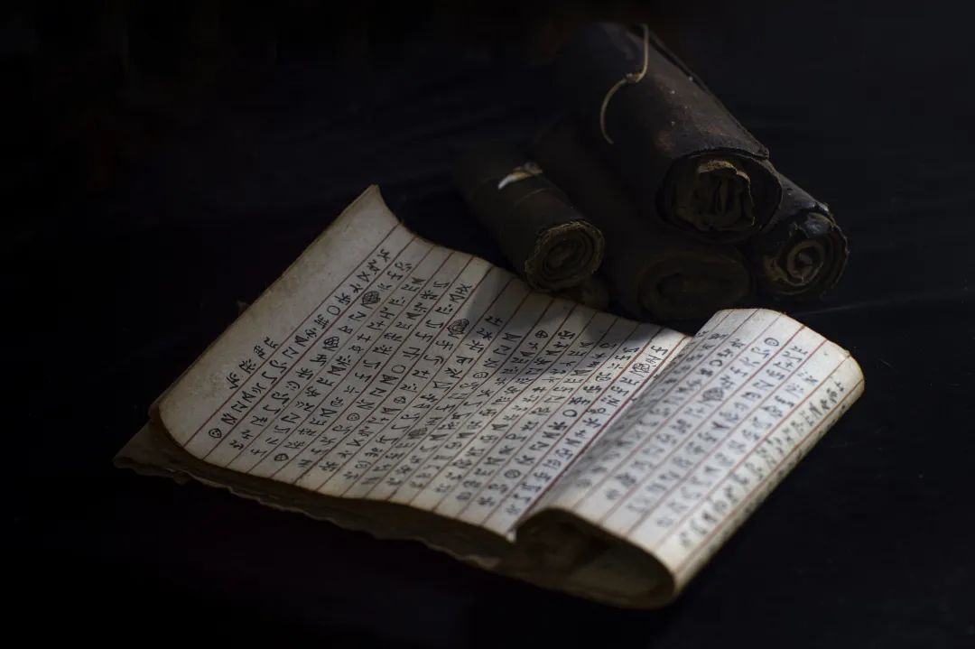 毕摩工作室的房间很小,也很暖。阳光照亮桌上堆叠着的经卷——这是《查姆》的载体,上面写满了繁复古老的彝文。