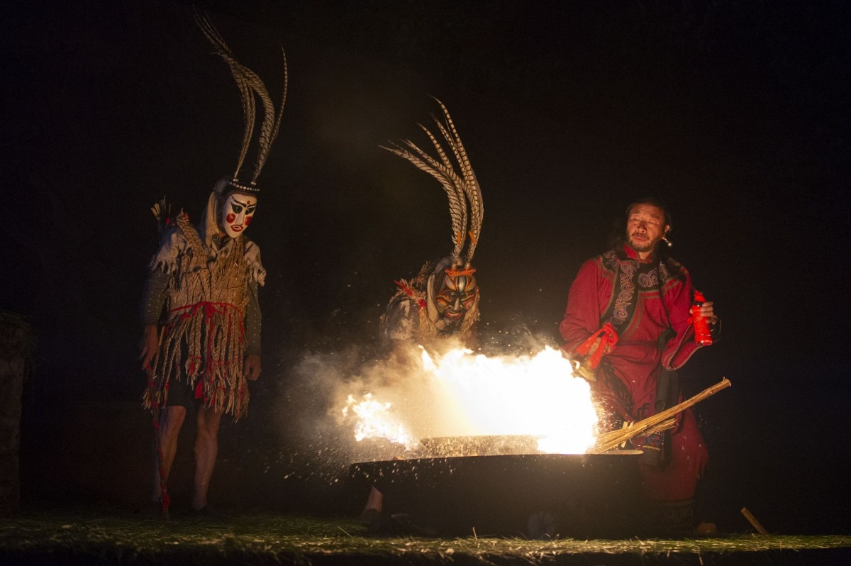 “生于火塘边,死于火堆上。”夜幕降临,彝人的篝火燃起。古老的文字在这一刻继续呼吸,随着火焰而不断苏醒、跃动。毕摩吟唱声起,那些古老的音节在夜空中回荡。