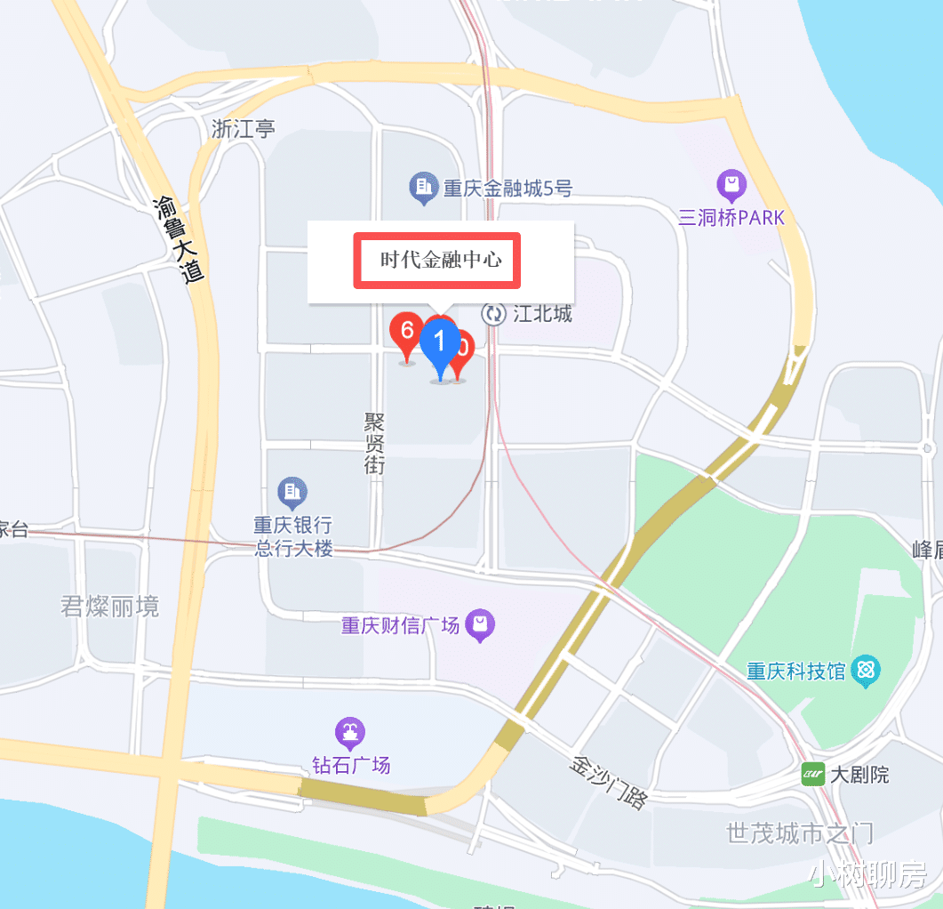 小树也算经常路过江北嘴了,不过对“时代金融中心”这个地名也着实陌生得紧,看情形还是早就修好了,为啥从来没听过呢?赶紧在地图上查了一下,江北嘴还真有这个地名,这下小树也直接懵逼了。