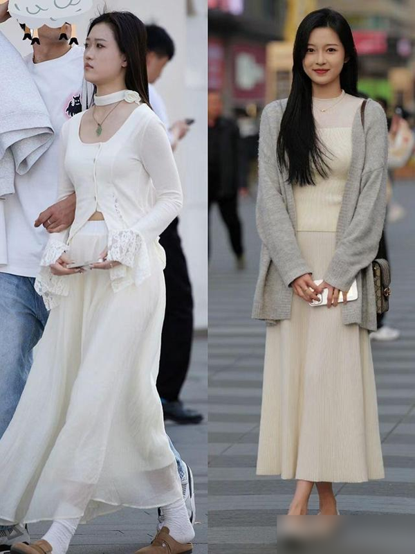 最近在深圳逛街,发现一个有趣现象:曾经满大街的百褶裙悄悄变少了,取而代之的是一片清爽的“豆腐白”——那些像豆腐般温润的浅色裙子,正以肉眼可见的速度占领街头。从年轻女孩到轻熟女性,从日常通勤到周末约会,豆腐裙的身影几乎覆盖了所有场景。这股突然刮起的“豆腐风”,到底有什么魔力?