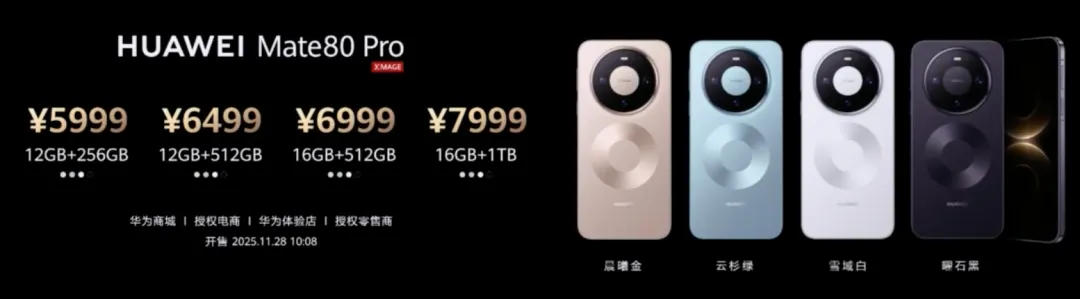 12GB+256GB:4699元(划重点,去年华为Mate 70是5499起,这次直接降了800元)