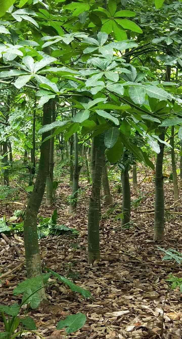 发财树,学名瓜栗,原产于巴西。它的外观十分引人注目,其树干粗壮,树皮青褐色,颜色深沉而富有质感,仿佛蕴含着一种古老而神秘的力量。树干上长有棱形凸起,给人一种独特的视觉感受,仿佛每一道纹理都在诉说着岁月的故事。发财树的叶片翠绿欲滴,呈掌状复叶,叶片错落有致,相互映衬,犹如一把把精致的小扇子,在微风中轻轻摇曳,充满了生机与活力。