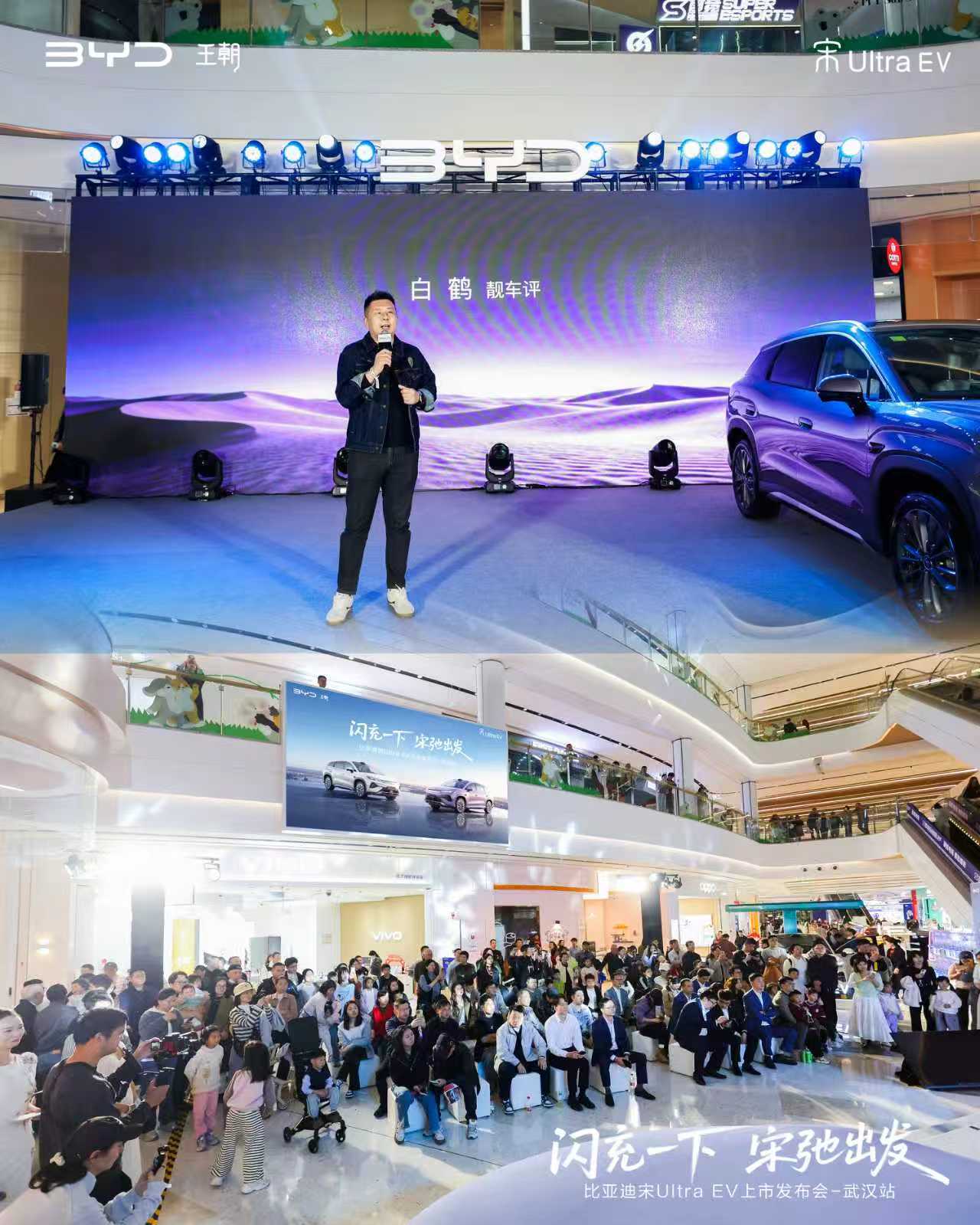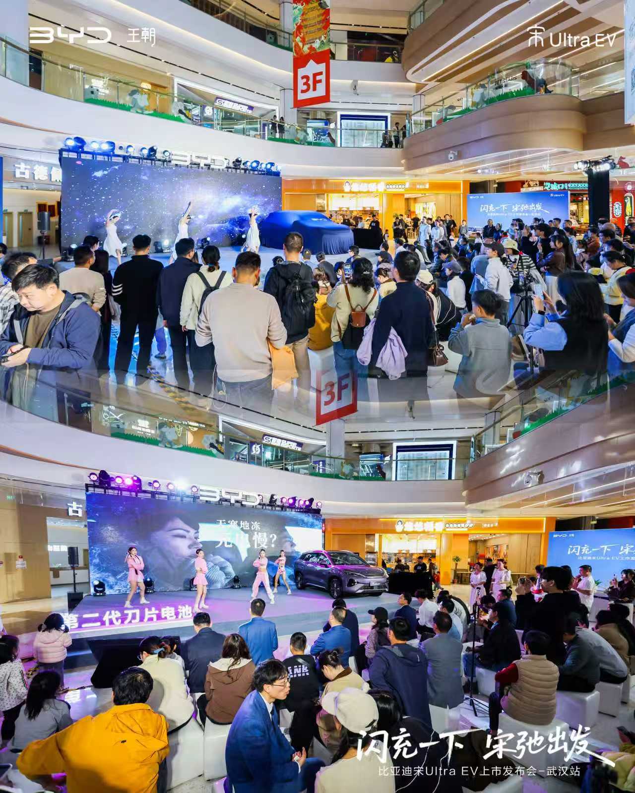 3月29日,武汉龙湖白沙天街霓虹璀璨,人潮涌动,比亚迪王朝网首款B级纯电SUV——宋Ultra EV在此正式登陆华中市场