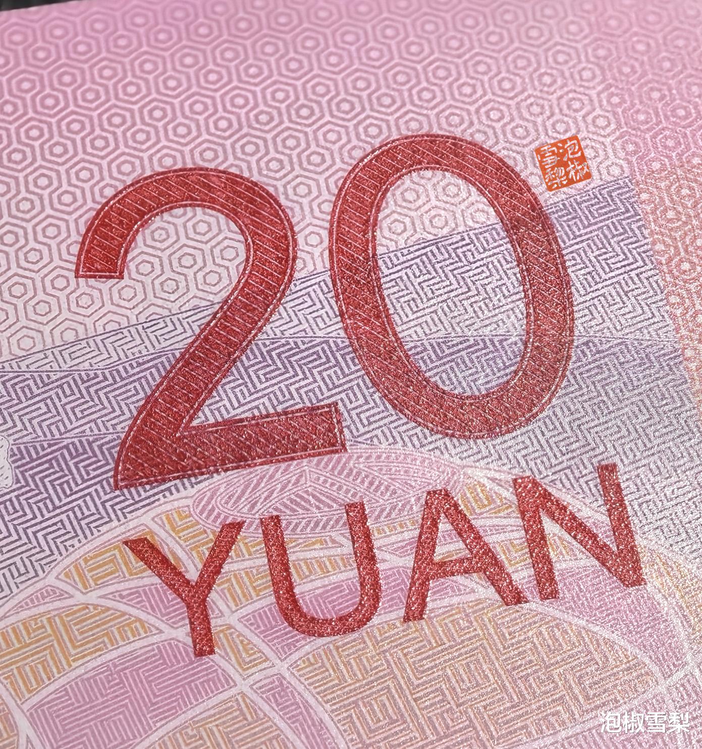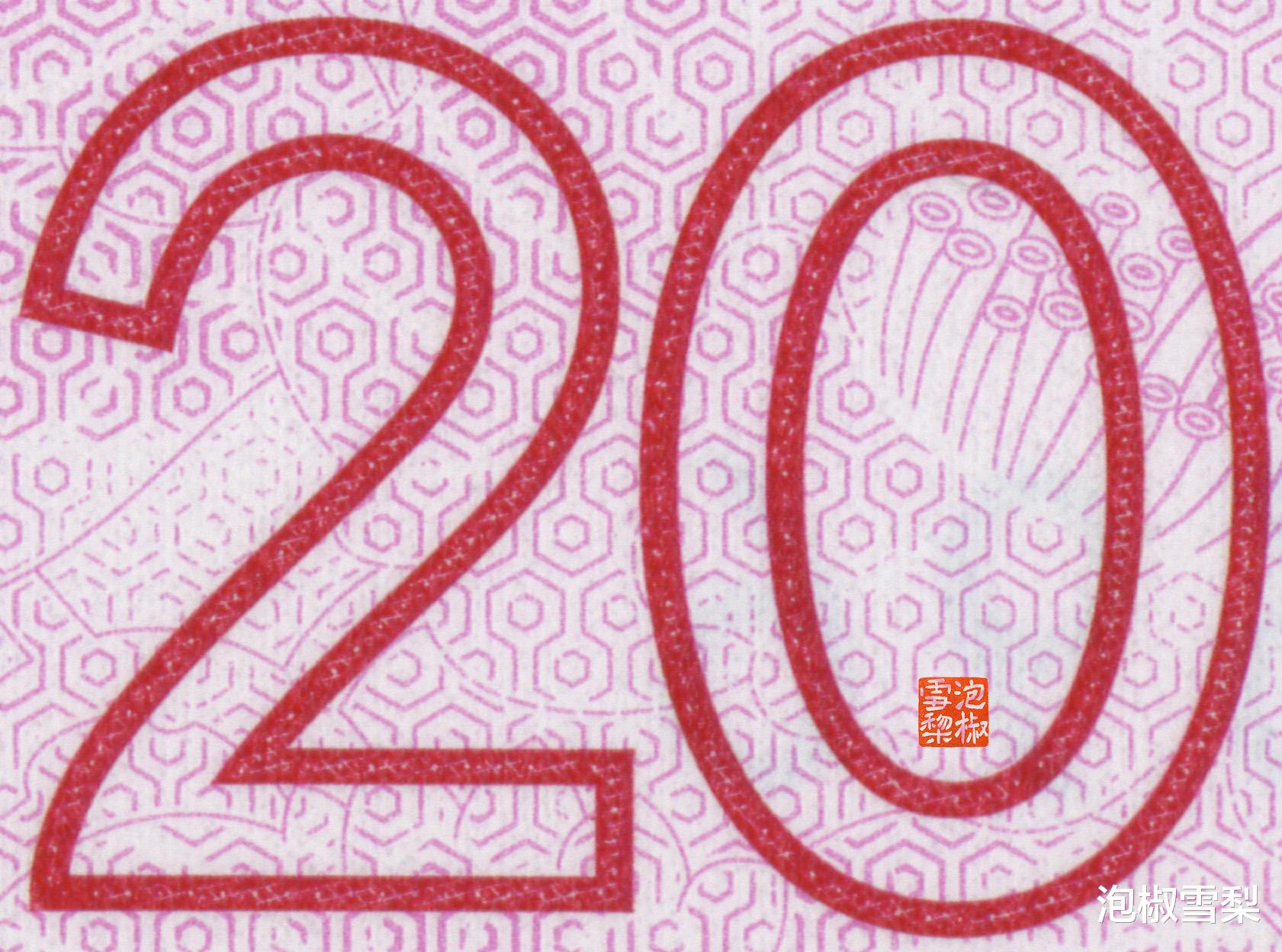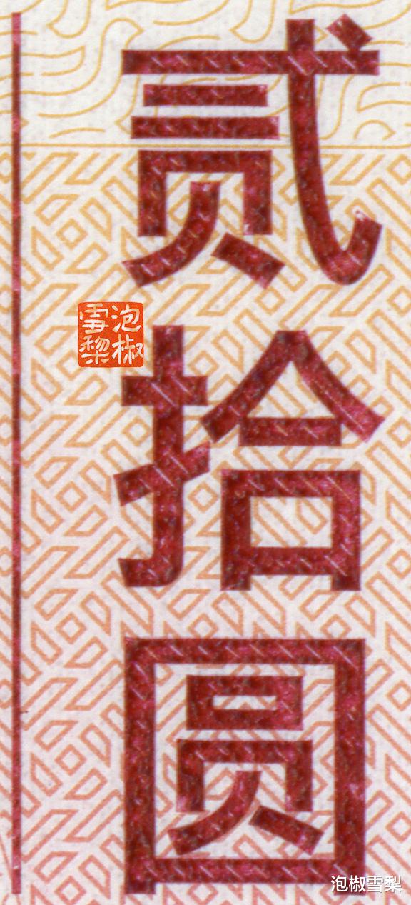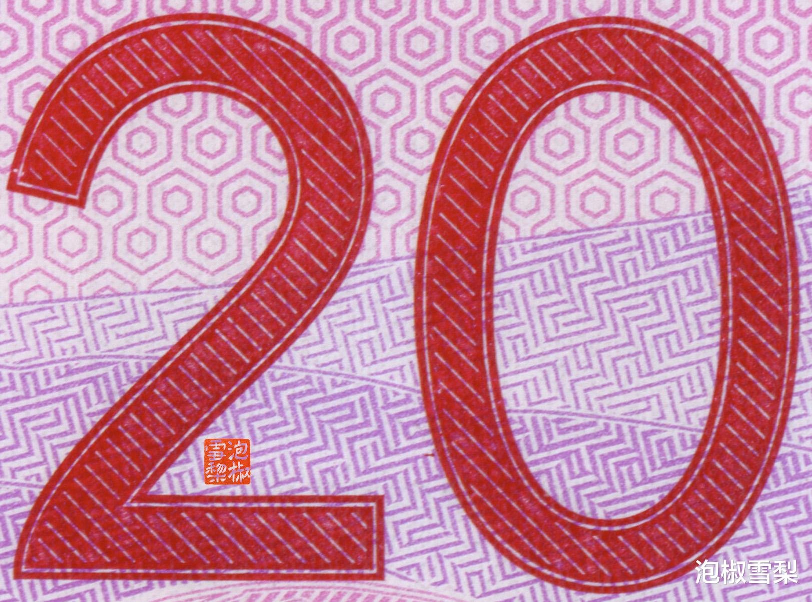 马年纪念钞没有过多的荧光效果,仅正面有一处金色“20”阴文。