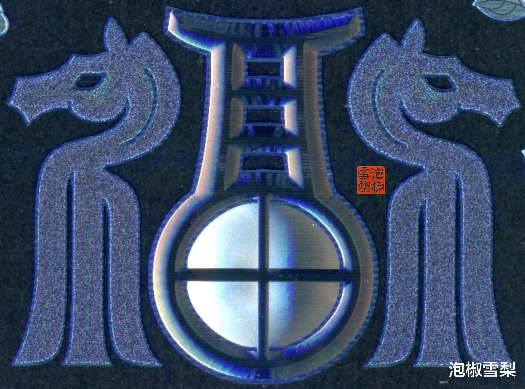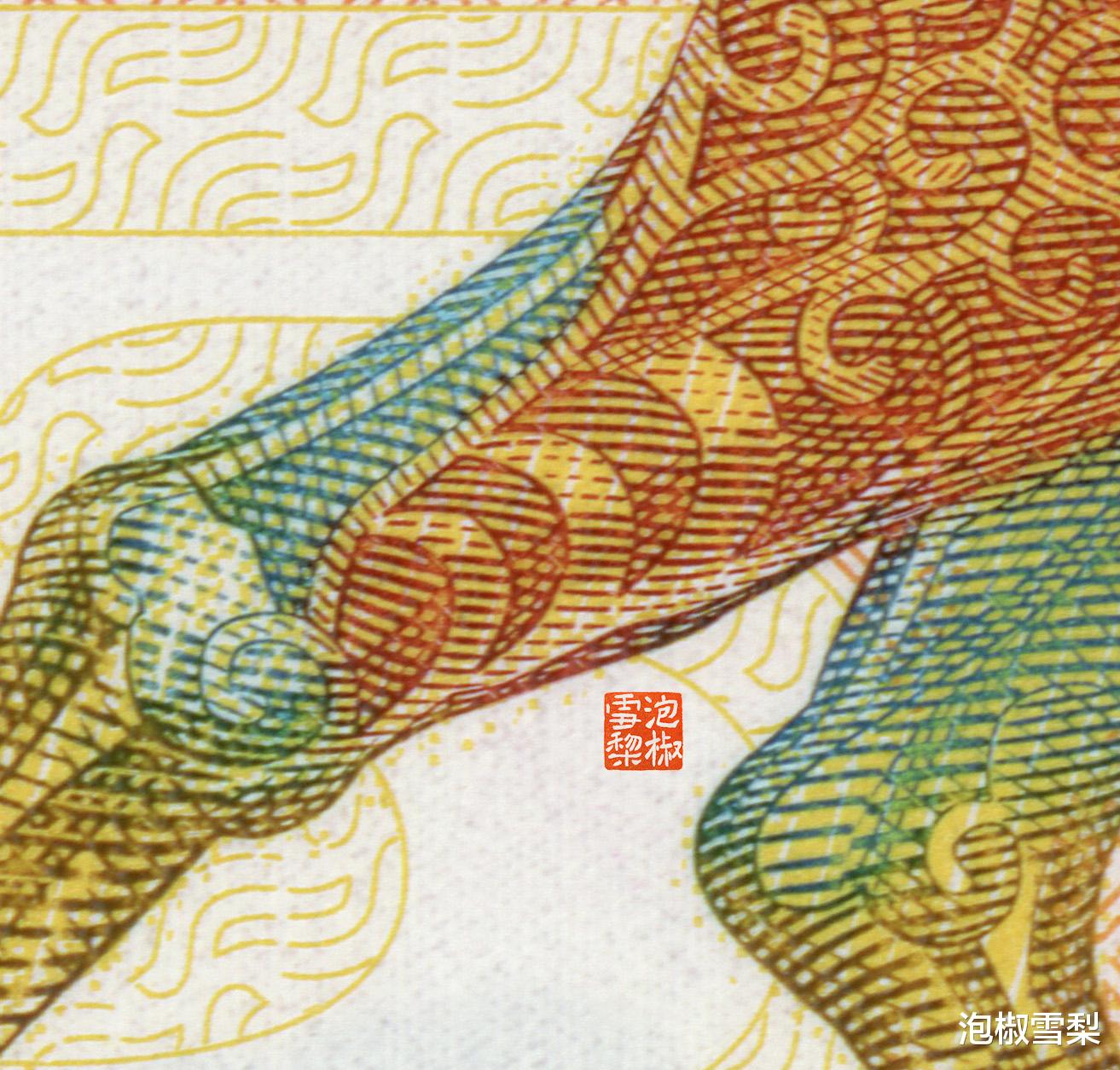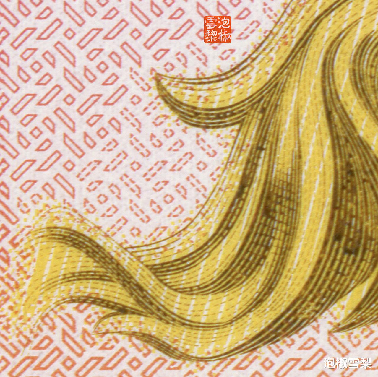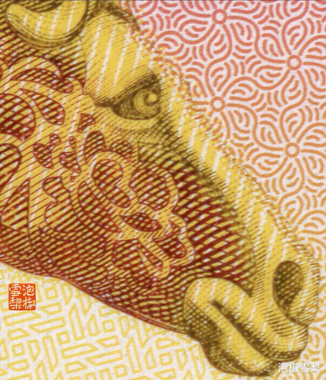 面额处有金色蜂窝状金属光泽,如果将马的全身采用这种材料印刷,效果应该会更好。