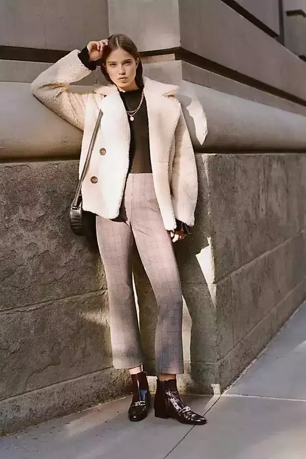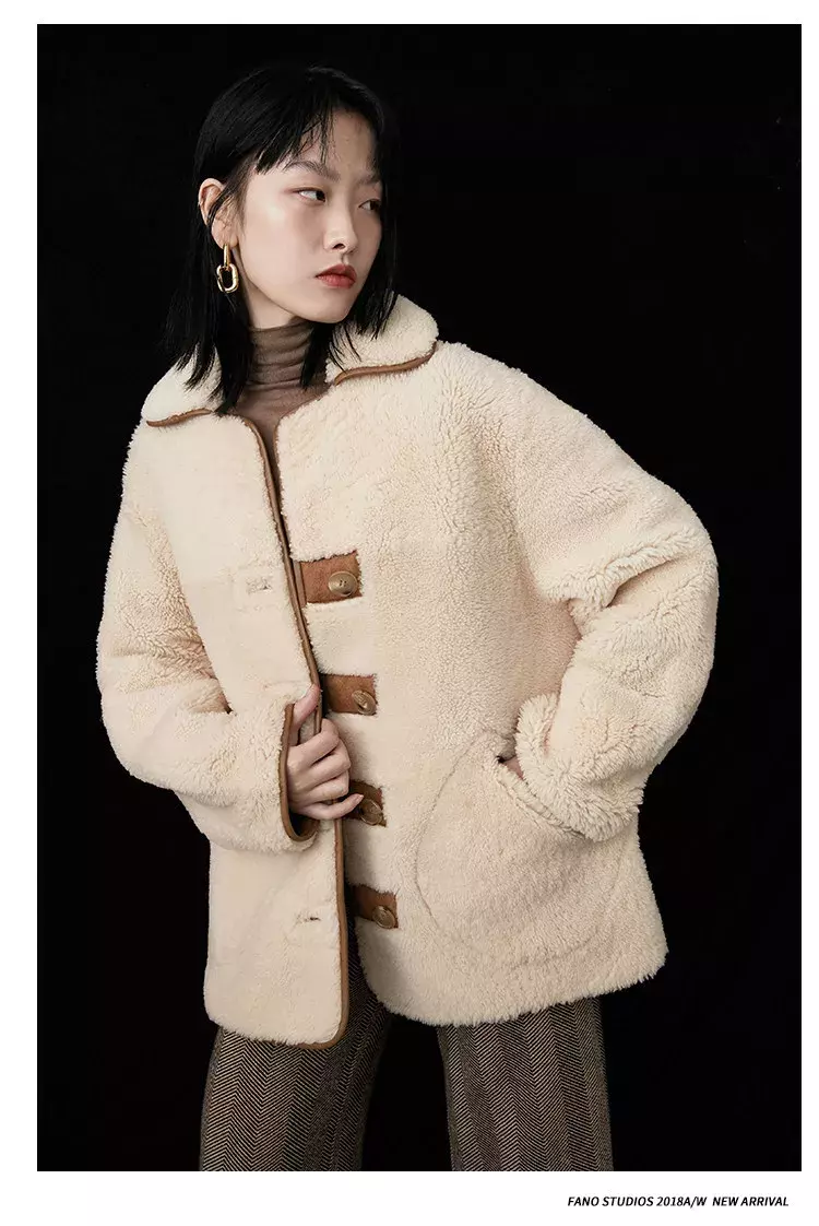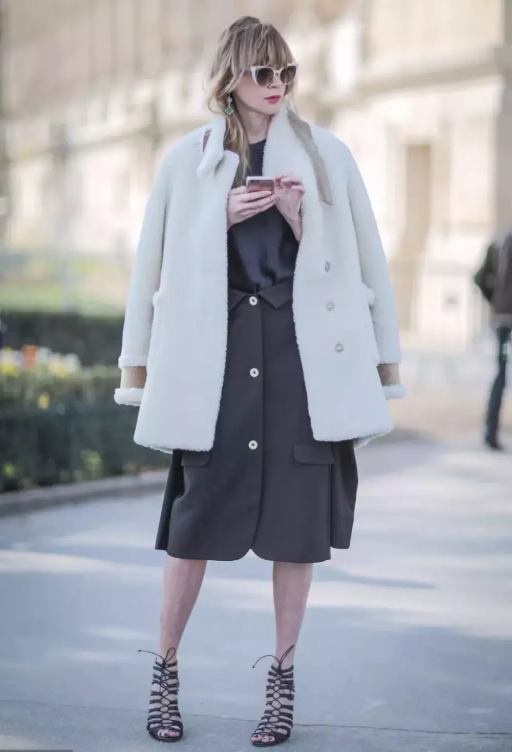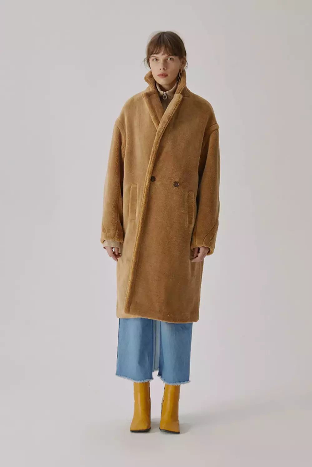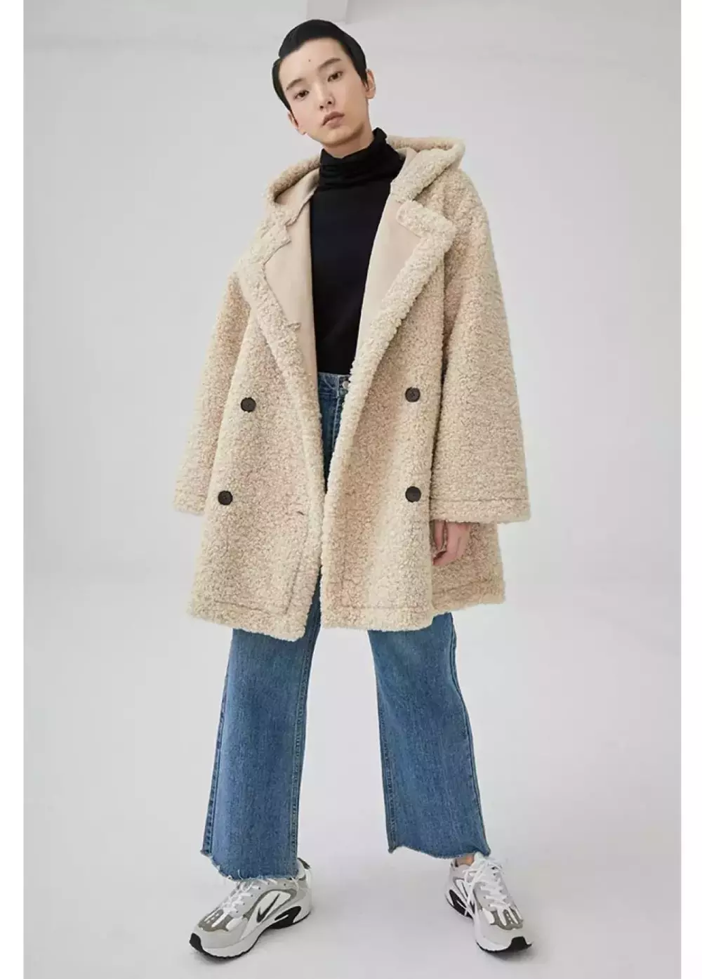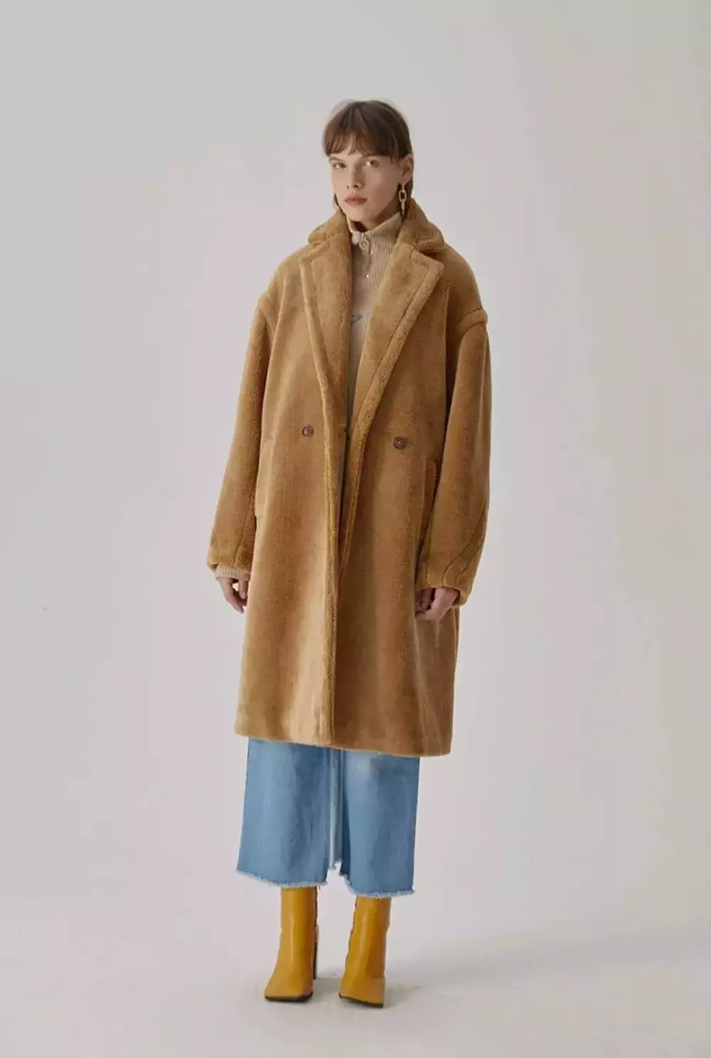 当然奶油色的泰迪熊外套也是很常见的款式,这种偏黄的乳白色十分显质感,低调却不单调。