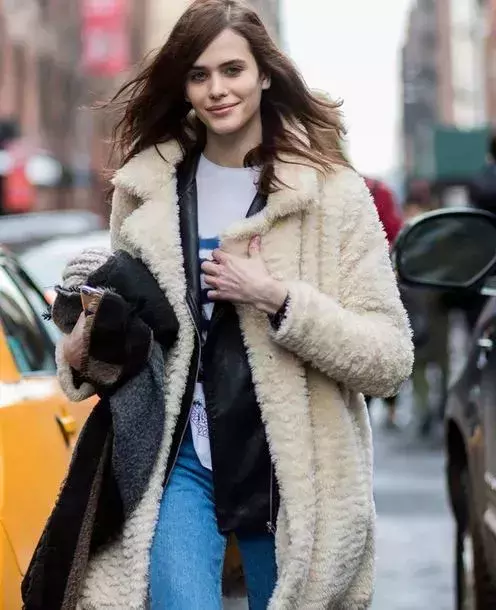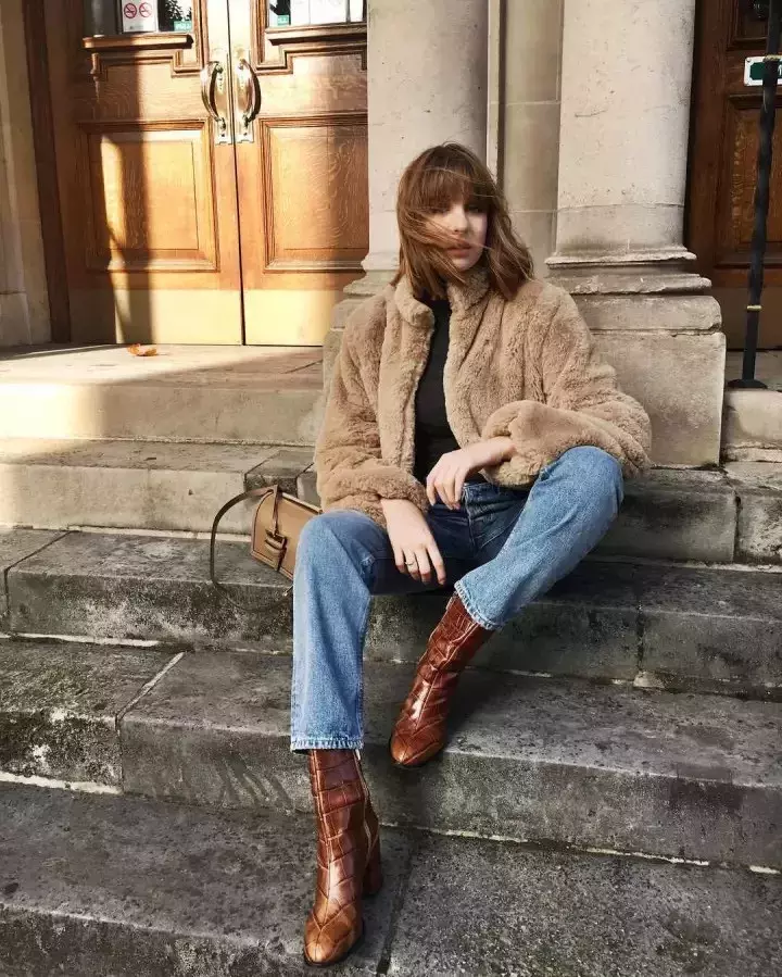 蓬松的毛绒外套一不小心会给人很Drama的感觉,这时候就需要一条轻松洒脱的牛仔裤来平衡一下,告诉别人“我只是随便穿穿就很时髦!”