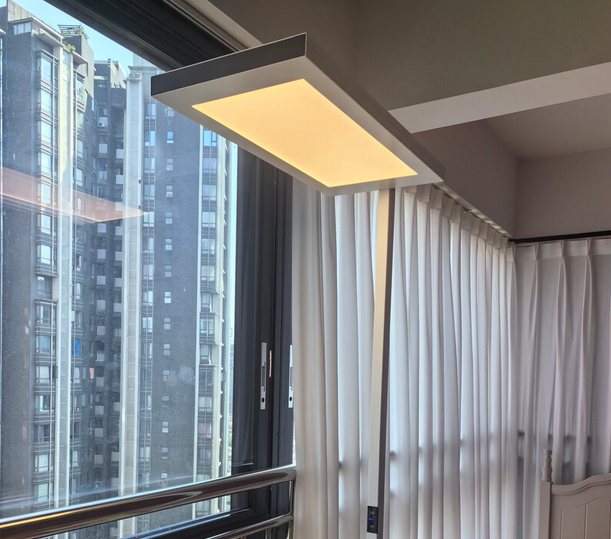照度方面,凭借超高漫反射占比(仅11%直接光)以及14000lm高光通量,可满足20㎡区域照明,桌面照度充足且柔和,光线质感媲美格林威治早晨7点的晨光。眩光控制行业顶尖,UGR低至9.5,从根源上杜绝眩光危害,护眼效果拉满。