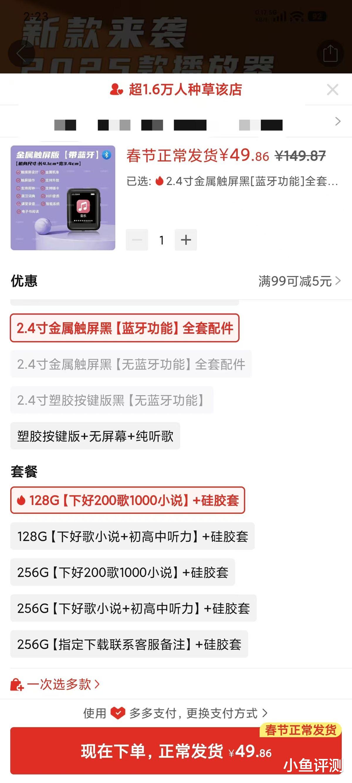 点进去一看29.8元的是无屏幕的按键版,支持触屏款的起售价是49.8元,险些被卖家给套路了。