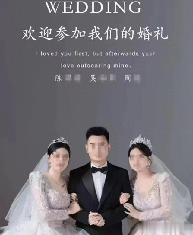 从曝光的婚礼邀请函来看,白纸黑字,清清楚楚地写着一男两女。照片里,三人笑容满面,身着礼服。若没人提醒,谁能想到中间的男士是新郎,两边的都是新娘呢?新郎不仅给亲朋好友发了邀请函,还在朋友圈得意洋洋地发视频,配文“两个婆娘在一起喝酒还是开心”,面对好友的质疑,更是大言不惭地回复:“人生不就是要赌一把。”这赌得可有点大啊,直接挑战公序良俗,他到底是怎么想的呢?