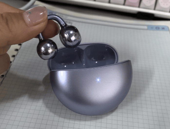 华为FreeClip 2新增丹宁蓝、羽沙白两款配色,充电盒采用织纹肌理设计,手感细腻,看起来也更有质感,同时体积控制得不错,随身携带没负担。单耳约5.1g,升级后的C形桥结合记忆金属与舒适豆结构,对大多数耳型的贴合度都不错,通勤场景下佩戴体验稳定。不过耳廓偏大的用户长时间佩戴可能会有夹耳感,动作幅度较大的运动时也偶尔会出现滑落情况。