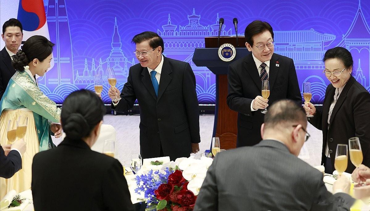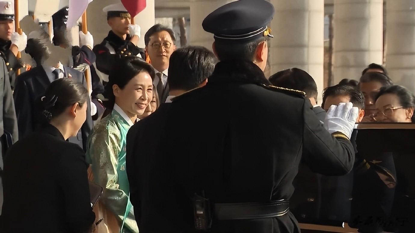 12月15日,老挝主席通伦西苏里携夫人访问韩国!韩国总统李在明虽然没有到机场亲自接机,但是却在总统府为老挝主席夫妇举办了隆重的欢迎仪式。韩国第一夫人金惠京陪着丈夫亮相,罕见穿韩服出席欢迎仪式,虽然不是第一次见她穿韩服,但是这次的造型却可圈可点,让人惊艳。