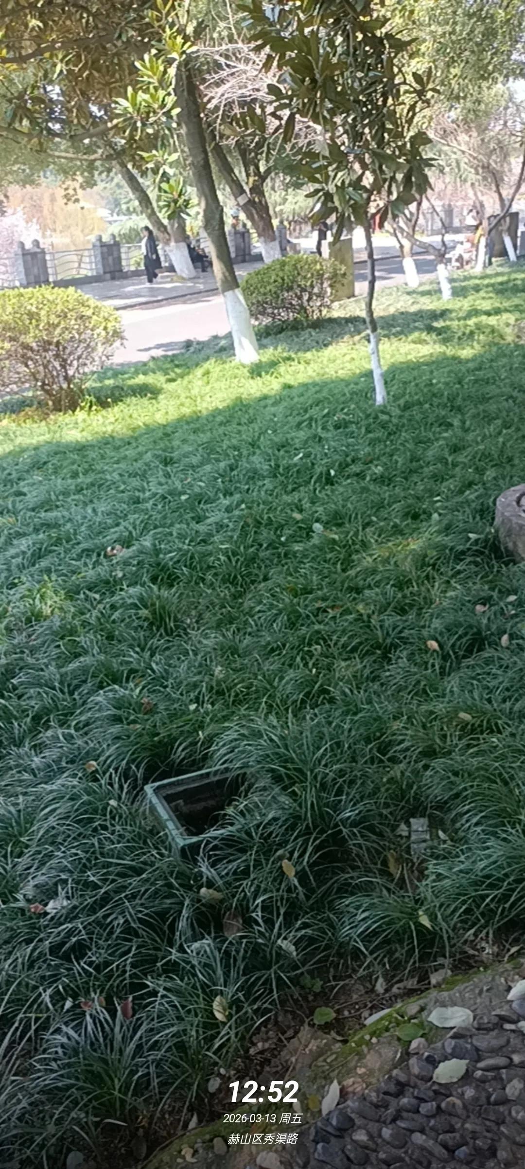 秀峰公园内秀渠路绿化带路灯井盖已更换