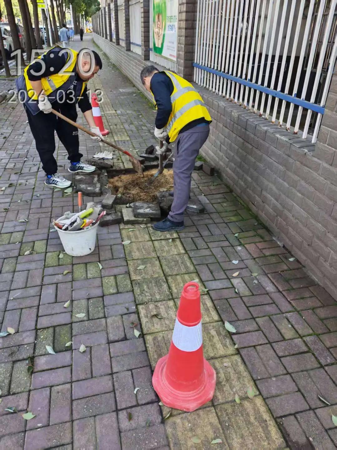3月13日,市民王女士通过该小程序反映,资阳区金花湖西路资阳区六中初中部家属区围墙外人行道路面塌陷,学生放学通行存在安全隐患。平台收悉后第一时间派单至市市政维护公司,工作人员迅速到场维修,及时消除安全隐患。