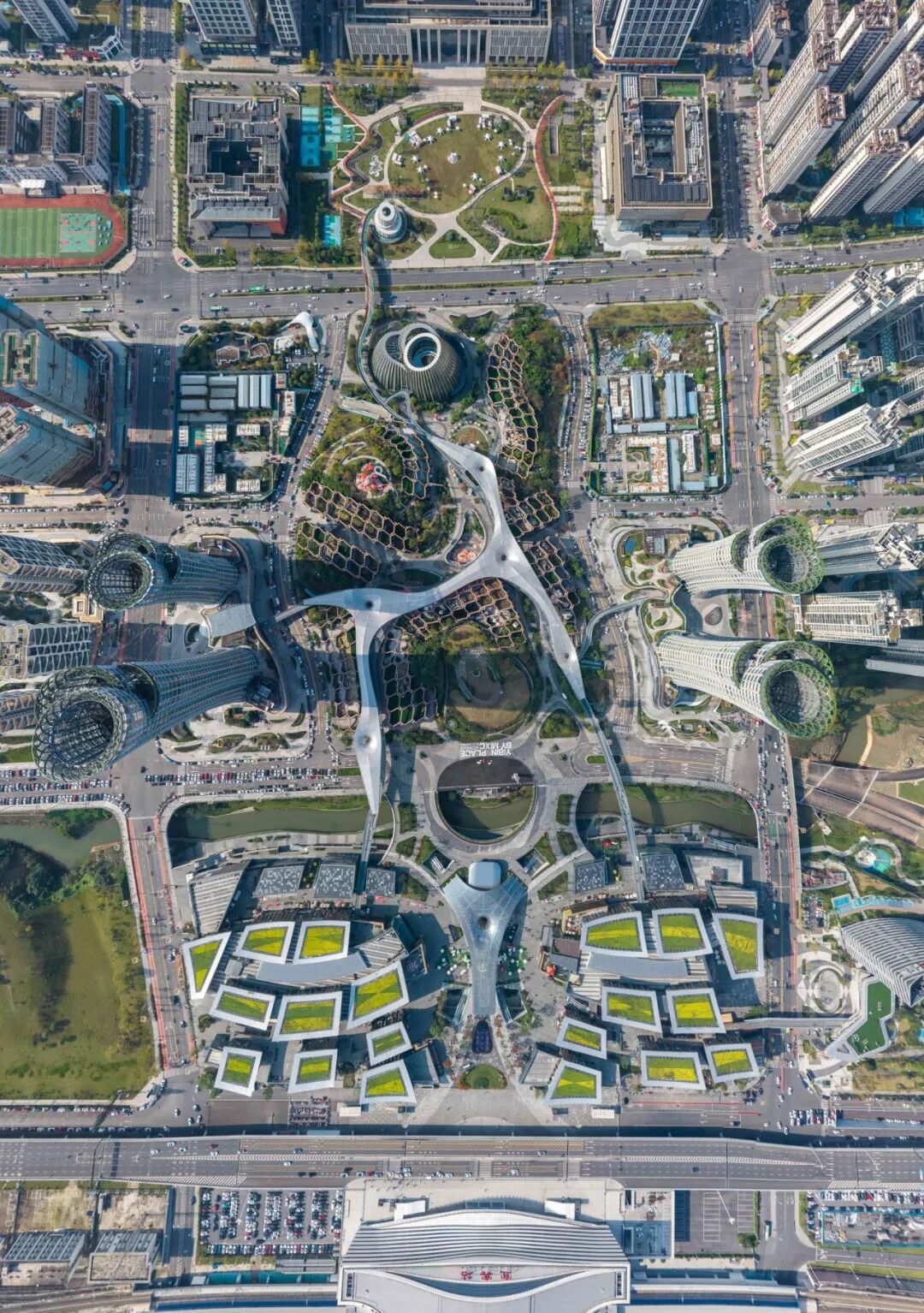 这些建筑不仅承载办公与商业功能,更通过绿植屋面、层层退台和开放的步行系统,再现森林般的生态层次。