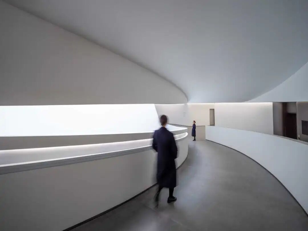 中央公园保留了原有地貌特征,蜿蜒小径穿行于绿荫之中,连接着一座外形流畅的数字艺术中心——艺云馆。该馆采用网壳结构实现无柱空间,铝板幕墙轻盈包裹,为数字艺术展示提供了高度灵活的场域。