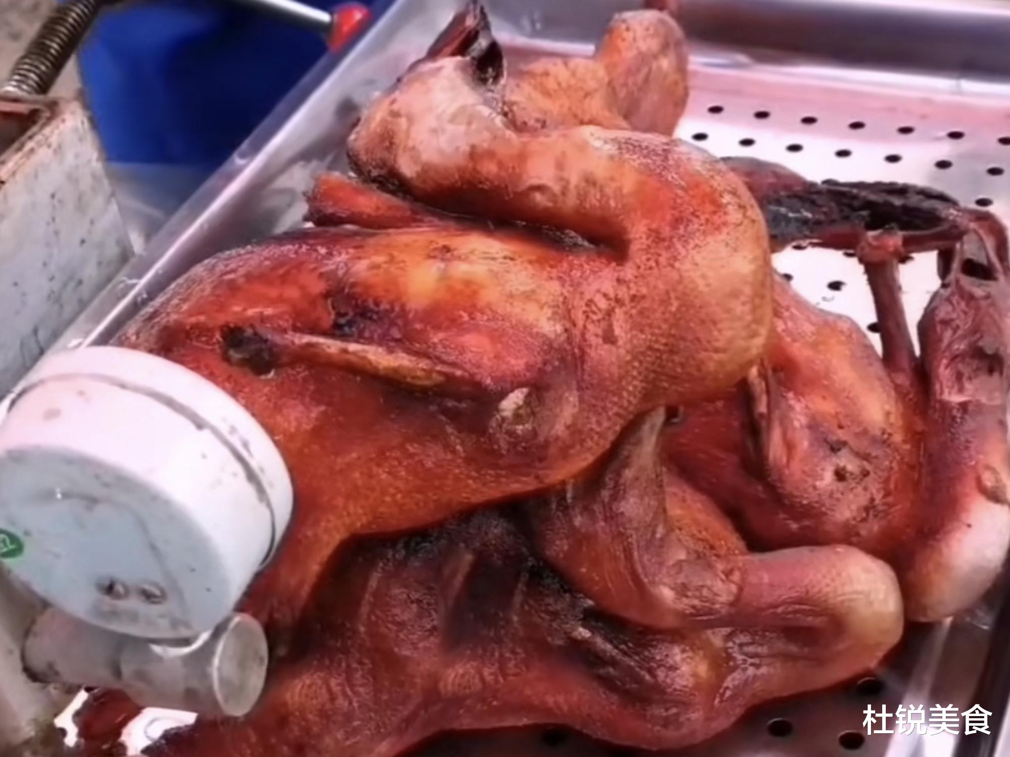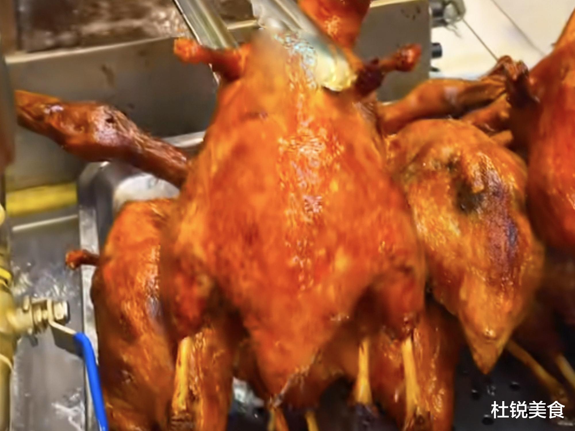 制作这种爆烤鸭,大多会选用一种人工养殖的鸭子品种,那便是“樱桃谷鸭”。这是一种速成的鸭子品种,生长周期短,一般不到两个月便可以出棚,一只在2斤左右。因此,这种樱桃谷鸭成本也特别低,那个年代一只也就七八块钱的成本。因为是速成鸭子品种,肉质可想而知,再加上完全人工养殖,皮下脂肪特别多,只适合制作这种爆烤鸭。