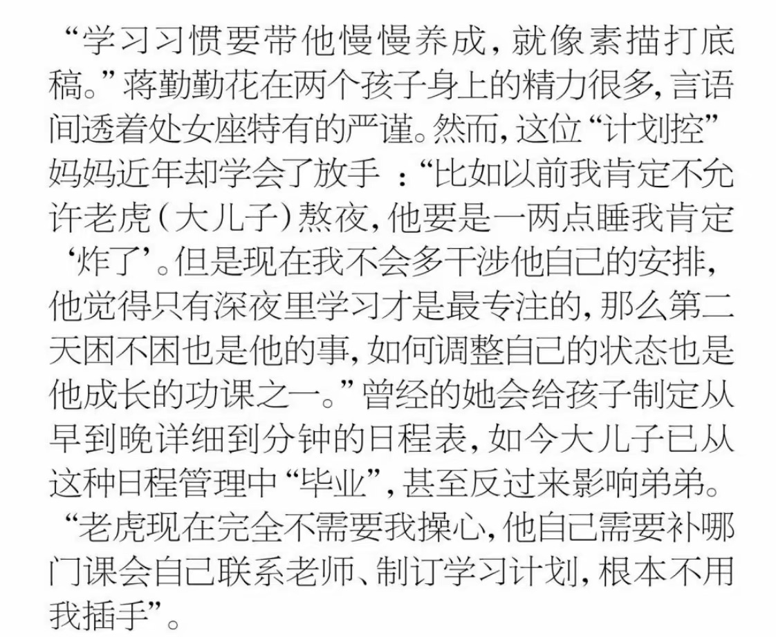 每一个家长都对孩子寄予厚望,蒋勤勤也不例外。说到虎虎拿了全球二等奖的时候,蒋勤勤脸上满是自豪。