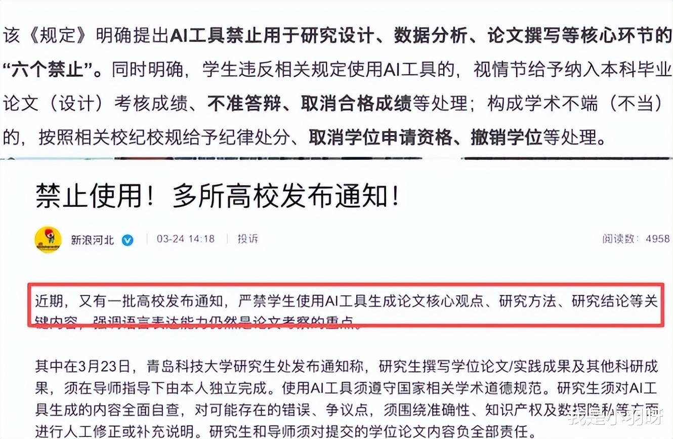 还有多所高校发布严厉的“AI禁令”,在AI能一键生成论文、一键写代码的今天,学校冒着被学生骂“古板”的风险,亮出学术诚信的红灯。