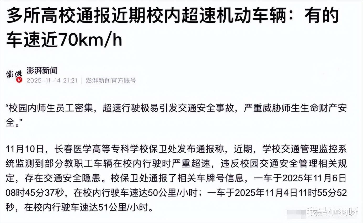 类似的事儿其实不少。去年有高校通报学生在校内骑电动车时速飙到69公里,要知道那可是在人群密集的校园主干道,又不是F1赛车场。