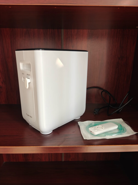 它的这款富林制氧机平时用起来还行,接普通插座就能用,出氧管长度够,老人躺在床上也能拿到。技术上有静音风扇,噪音比之前用的小一点,还有断电报警,突然断电会响。但浓度不够高,最高档实际大概90%左右,不像有些机器到93%以上,日常用还行,高浓度需求可能差点。
