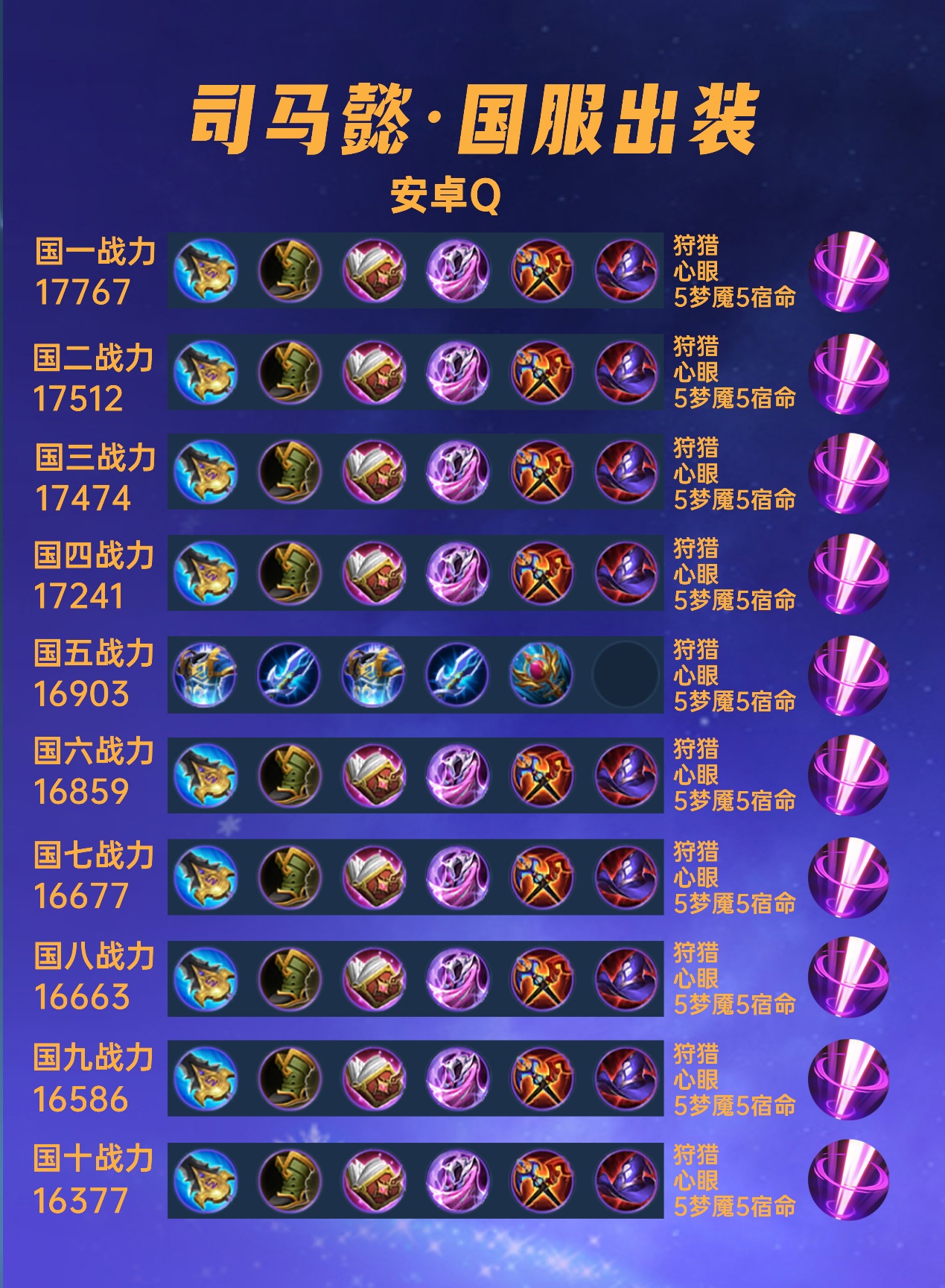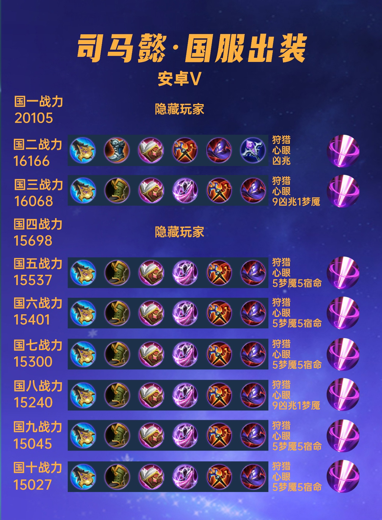 这篇文章我们来看一下40位国服司马懿的出装铭文汇总。