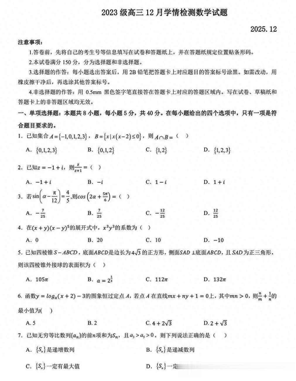 在高三繁重的学业中,每一次学情检测都如同战场上的小规模战役,是对同学们知识储备和解题能力的关键检验。山东省济南市最新的2026届高三12月学情检测数学试题,质量还是非常高的。