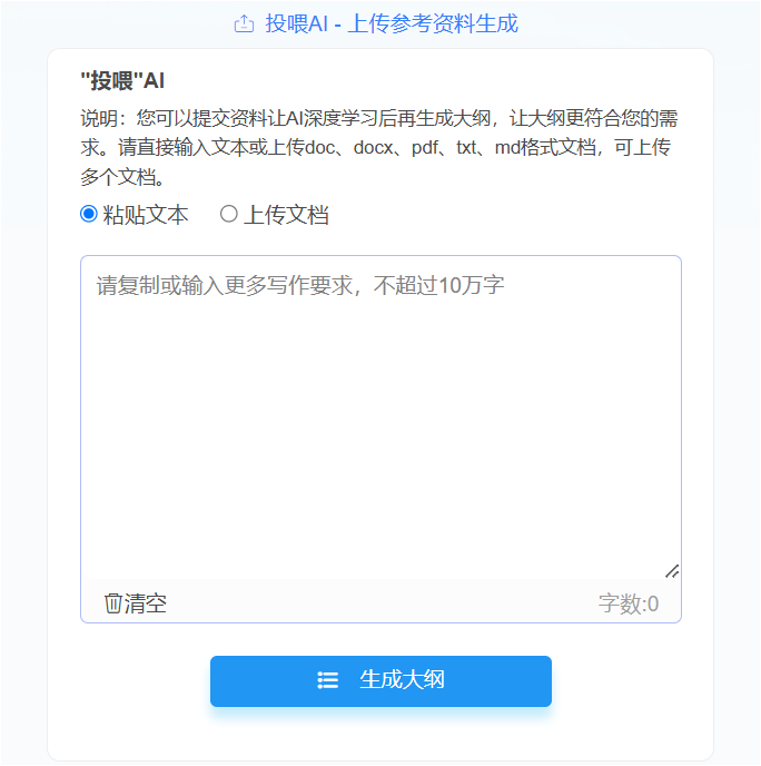 4. 投喂AI,个性化定制,AI论文生成独一无二“投喂AI”是一笔AI展示个性化、精准化内容生成的功能之一。用户可以上传课程讲义、导师指定的核心文献、实验数据,或者自己的读书笔记或初稿,让一笔AI深度学习这些资料。
