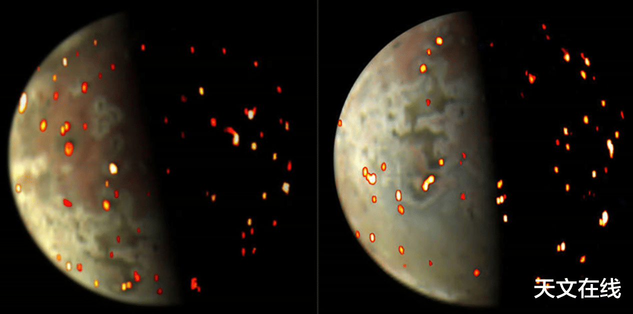 -看到木星的火山月亮,在美国宇航局朱诺探测器令人难以置信的图像中发出炽热的红光