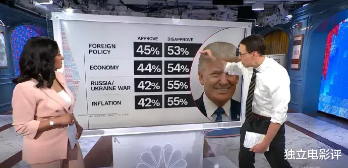 美国全国广播公司新闻网民意调查显示, 42%的受访美国人认可川普对俄乌战争的处理方式,而55%的人表示不赞同。