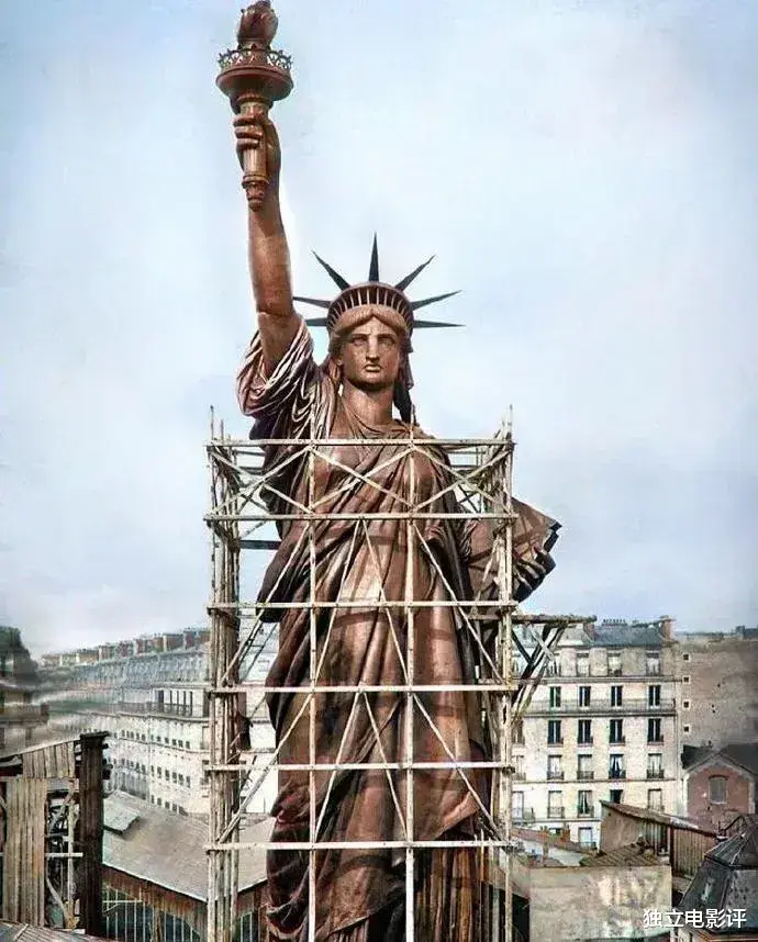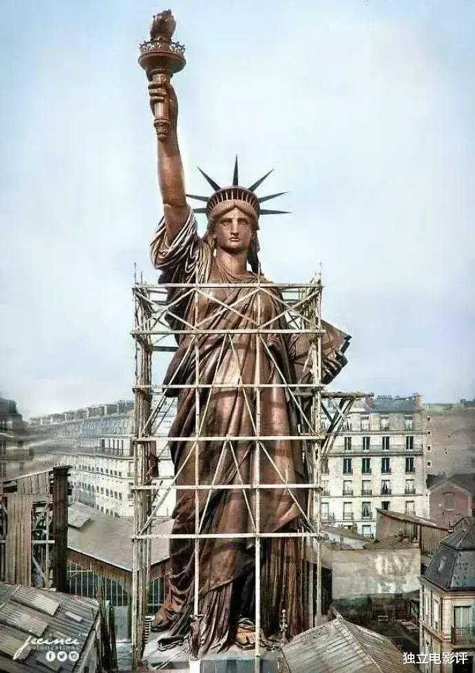 1885年,巴黎,用俄国铜打造的自由女神(先是铜褐色,后来渐渐变色)