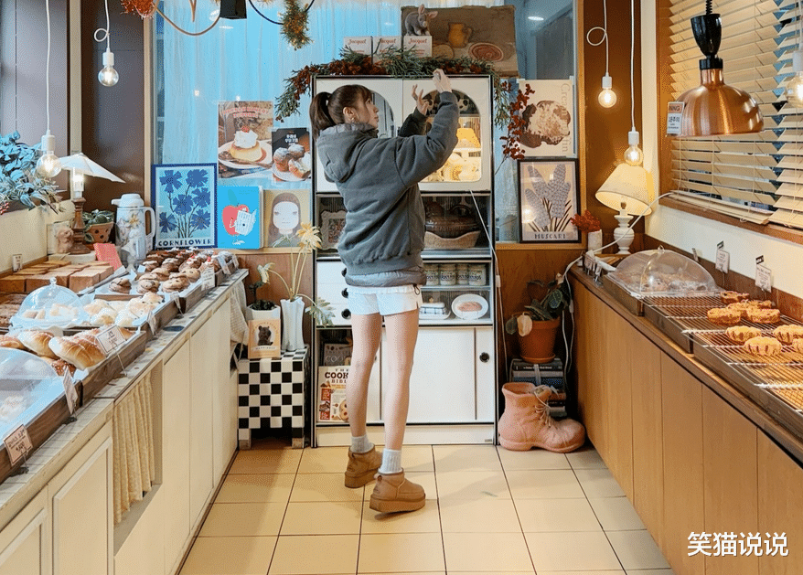 尹恩惠在面包店里拍了不少照片,除了美味的面包之外,还有她在店里的各种不同pose的照片,有近距离的自拍照,也有远距离的全身照片。每一张照片中的她都笑得很灿烂,笑容甜美,特别俏皮可爱。也看得出她的心情很不错。