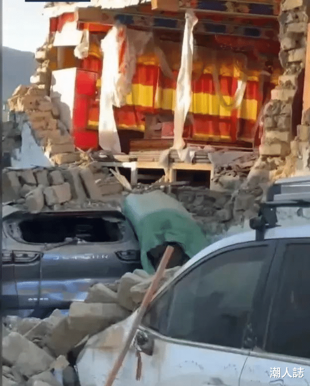 央视直播受灾现场,视频中,当地的房屋损毁严重,墙体倒塌,门市牌匾掉落,汽车被毁,街头堆满落石,满目疮痍。