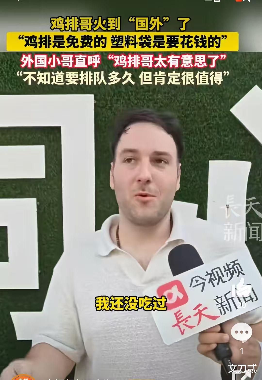 而外国小哥买完鸡排还不忘了邀请鸡排哥进行合影,全程多次用中文向鸡排哥致谢。