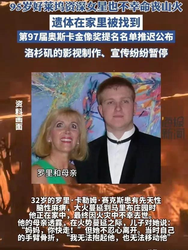 一名95岁的好莱坞资深女明星,也在此次山火中不幸丧生,遗体在家里被找到。