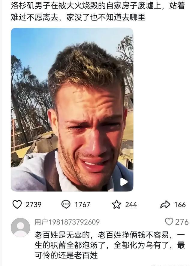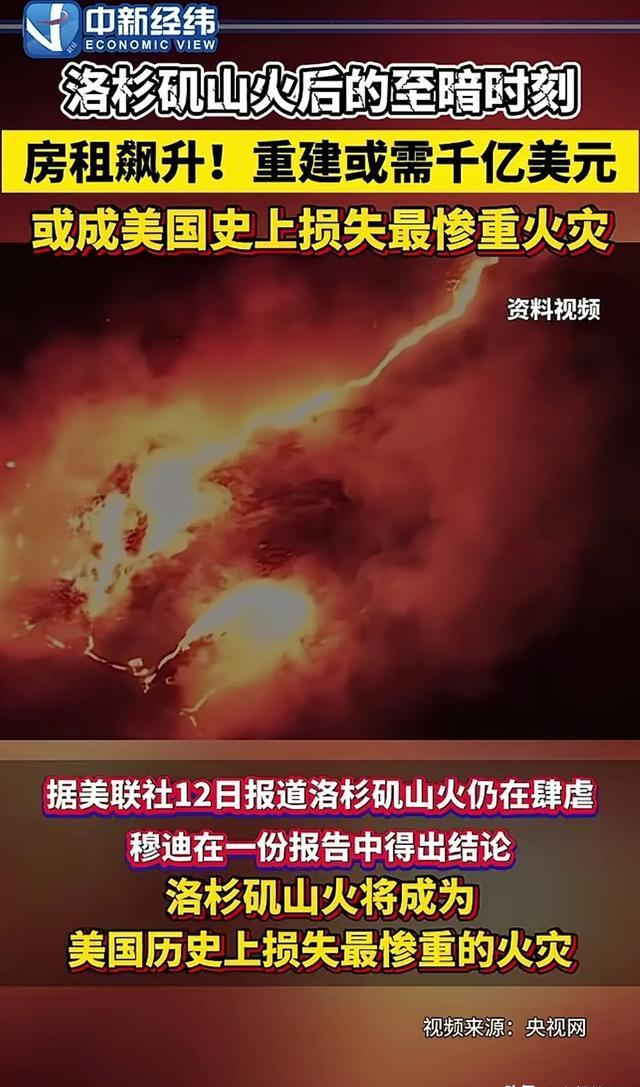 洛杉矶气候干燥,而且强风会助长火势,新的大火正在向城市蔓延,这对于当地居民来说,无疑是一个令人感到崩溃的消息,有些人的房产被大火无情的烧毁,造成重大财产损失,面临无家可归,而对于那些虽然暂时还未被波及的居民来说,随着时间的推移,他们的房子也可能会被烧毁,这是令人感到非常绝望的,有些人辛辛苦苦一辈子,却瞬间化为乌有,还有人背负高额房贷,然而哪怕房子被烧毁,贷款依然要还!