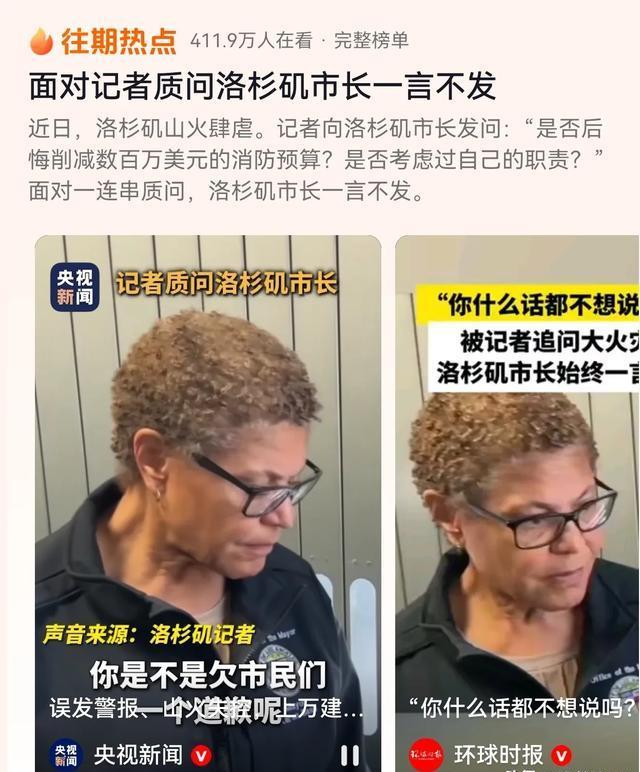 2025年1月7日,洛杉矶发生山火,如今已经持续燃烧一个星期了,依旧未被扑灭,接二连三的坏消息不断传来,当地官员也是一个头两个大,此前洛杉矶市长面对记者质问的时候,居然一言不发,保持沉默,完全给人一种心不在焉的态度,或者可能想不出行之有效的应对策略,索性就不搭理。
