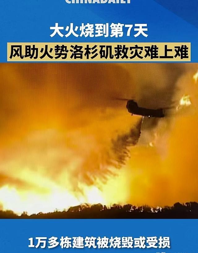 就在几个小时之前,来自于“中国日报”的报道,“洛杉矶大火烧到第7天,风助火势,救灾难上难”