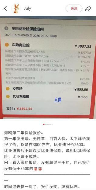 在用户这儿呢,比亚迪财险也没收获什么好名声。在小红书等社交平台上,有不少用户吐槽。有的说比亚迪财险官方客服不专业,保费比其他平台还高,走保险后官方打款慢得像蜗牛。甚至有一位海鸥车主表示:“比亚迪售后都不建议买比亚迪财险,觉得相比其他保险,它太不成熟了。”