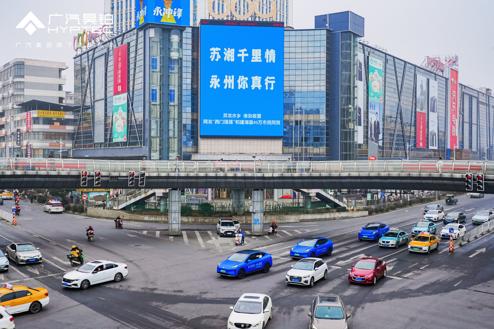 “十三太保”在广告牌上Battle,是永州出圈的上半集;而昊铂车队巡游应援CMG 群众足球邀请赛,则为这场跨城热潮注入全新活力。它直接把应援做成了可移动的——几十辆昊铂HT组队上街,标语贴好、车灯调亮,走到哪儿都是焦点。
