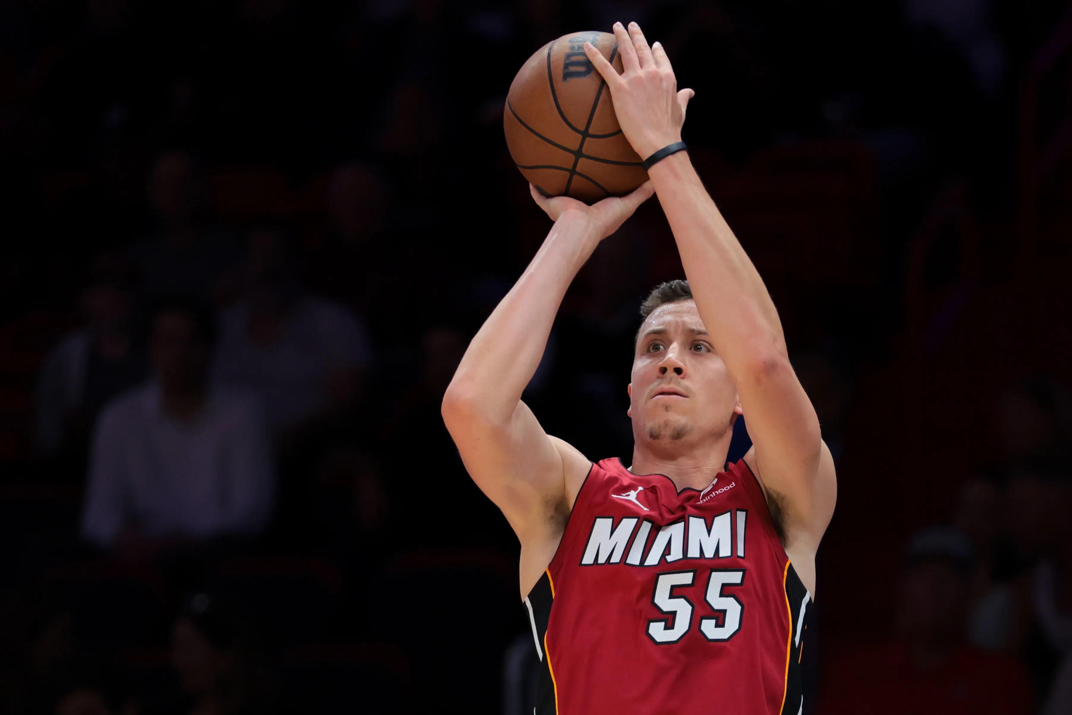 另一方面,在2024-25赛季,湖人三分命中率为36.6%,与联盟其他球队相比,他们在联盟中排名第14位,对于一支渴望夺冠的球队来说,这显然不是好的迹象。虽然球队拥有一些可靠的外线射手,如里夫斯、八村塁、芬尼-史密斯,甚至是新秀克内克特,但很明显,他们季后赛的三分火力并不令人满意。考虑到这一点,湖人可以有效地采取行动,获得一个关键的三分威胁,来加强他们的外线火力——湖人可以将迈阿密热火队的神射手邓肯-罗宾逊作为他们的目标。下面就有一个潜在的交易想法,可以帮助湖人得到这位经验丰富的射手。