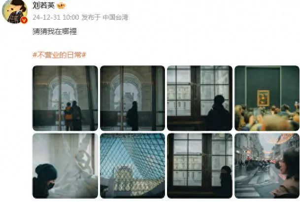 12 月 31 日,刘若英分享了一组和儿子的合照,俏皮地向粉丝发问:“猜猜我在哪儿呢?”