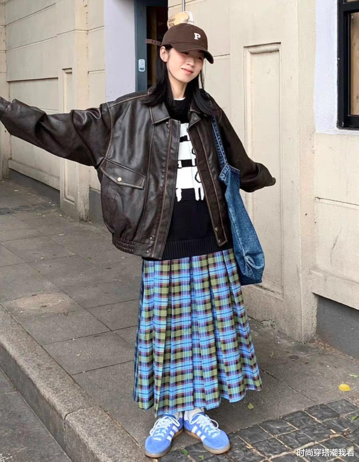 鞋子方面,除了万能的短靴,还可以根据风格尝试乐福鞋或小白鞋。乐福鞋更显知性,适合通勤;小白鞋则能注入休闲活力,让格子裙造型变得更轻松。
