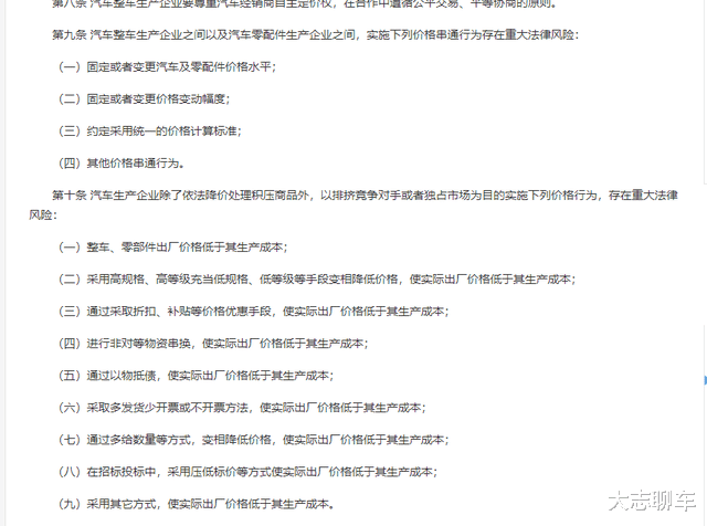 当然,这对于整个汽车市场而言,却并不是什么好事,因为车企一旦这么搞,势必会带崩汽车市场,于是,我们可以看到国家发布了一份《汽车行业价格行为合规指南》这份文件里面,就明确把车企的一些骚操作行为列入到禁止里面,为啥要这么干?很简单,现在的车企这么搞下去,势必会让整个汽车市场都出现大问题。