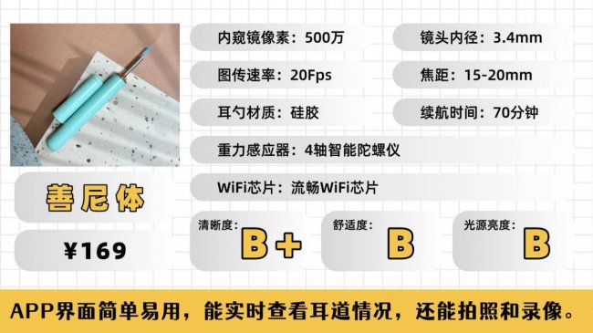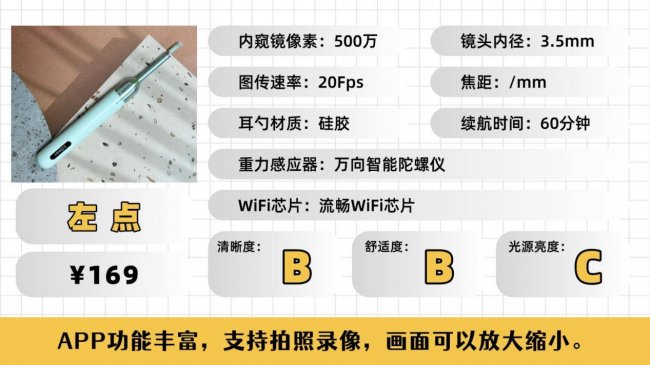画质表现:500万像素镜头,满足儿童浅层耳道清洁与基础观察;深层耳垢细节呈现一般,放大后清晰度下降,需多次调整角度;WiFi连接稳定,APP功能简单易上手。