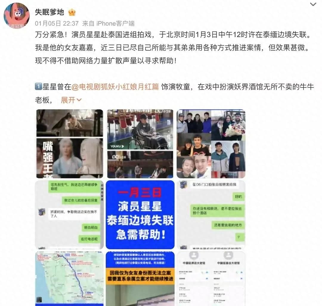 王星,一个充满朝气的年轻演员,1月3日前往泰国,本该是美好的旅程,却意外陷入困境。 具体失联时间尚不明确,但家人与他最后一次联系时,却发现情况不对劲。视频通话中,王星似乎被控制着,无法自由地回应家人的询问,这让人不寒而栗。 家人报警后,上海警方迅速立案,中国驻泰国领事馆也积极介入。 这突如其来的变故,让家人朋友心急如焚,也牵动着无数人的心。
